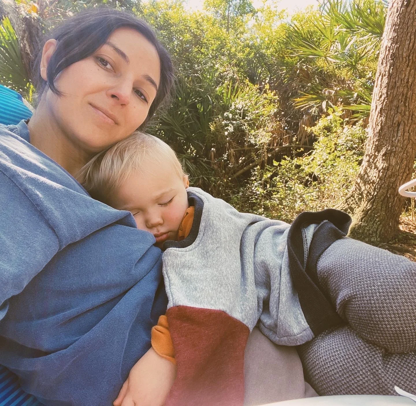 It is nearly impossible to control nap times when you do not have a private room to escape to with your sleepy toddler, so I suggest tossing all the schedules out the window. You can keep a loose time frame and monitor your child’s behavior to help steer them into a nap, but I wouldn’t stop what you’re doing and return to your campsite to try to force a nap. My son napped on me while I sat in a beach chair. He napped far less than he does at home, but I didn’t care. Besides, it was so sweet to hold him while he slept peacefully — far different than his usual squirmy self. We don’t use a carrier any more, but using that or a stroller if you have a need to bring one would work.